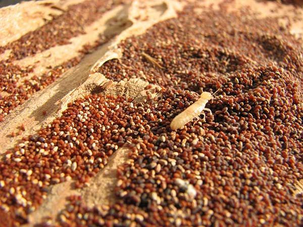 Κύριο σημάδι προσβολής των τερμιτών αποτελούν οι μικροί σωροί από τα μικρά σαν σπόροι ή κόκκοι, περιττώματα, τα οποία οι τερμίτες αποβάλλουν από στοές και οπές ή άλλα ανοίγματα και σχηματίζουν κάποιες φορές μικρούς σωρούς.