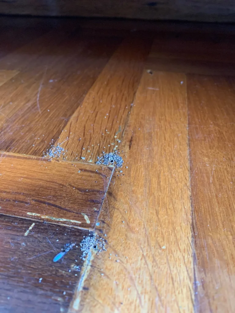 Οπές, πτερωτό και περιττώματα τερμιτών ξηρού ξύλου